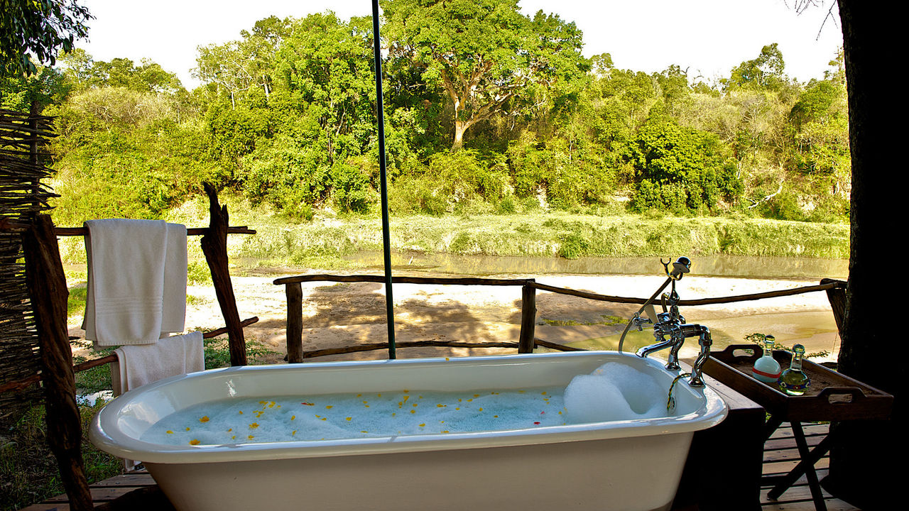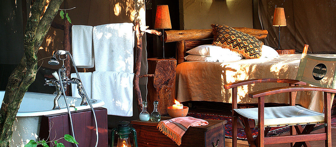 Die Zelte wurden speziell für die Öffnung zum Himmel entworfen. Auf einem Deck auf einer Seite bietet eine viktorianische Badewanne mit Klauenfüßen ein abgeschiedenes Bad im Freien - und eine einzigartige neue Perspektive des afrikanischen Busches.